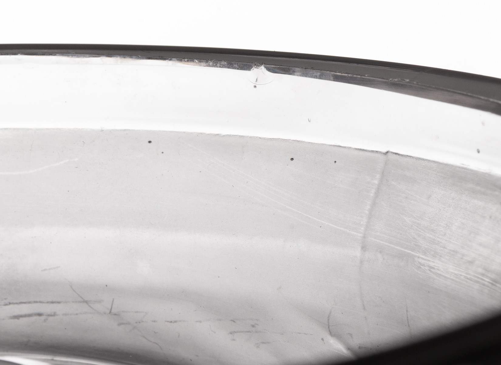 Very good condition. There are no chips, cracks, repairs, scratches or areas of heavy wear with the exception of a tiny flake at the edge of the polished top rim.