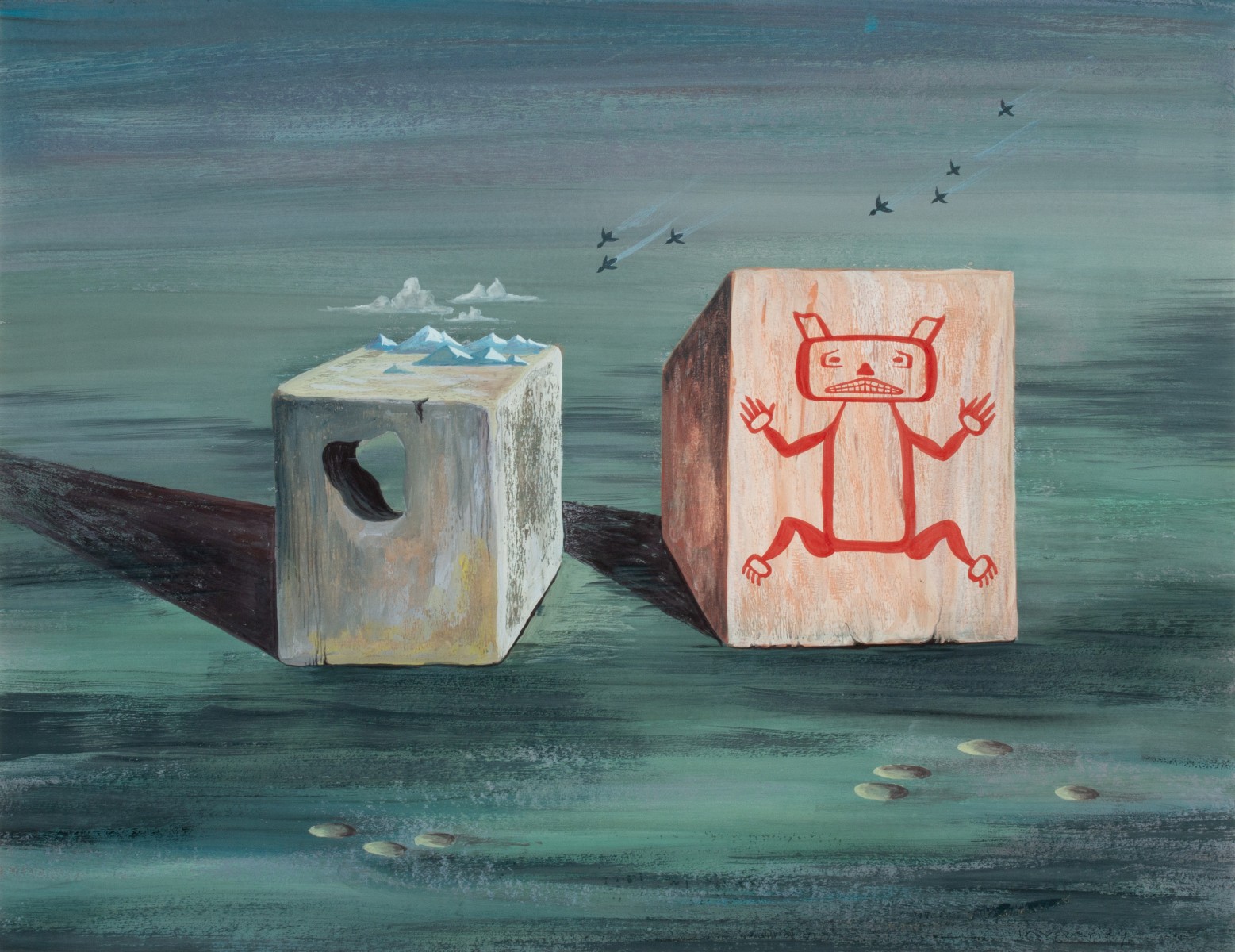 This work displays motifs and themes from the region's First Nation in its surreal presentation.