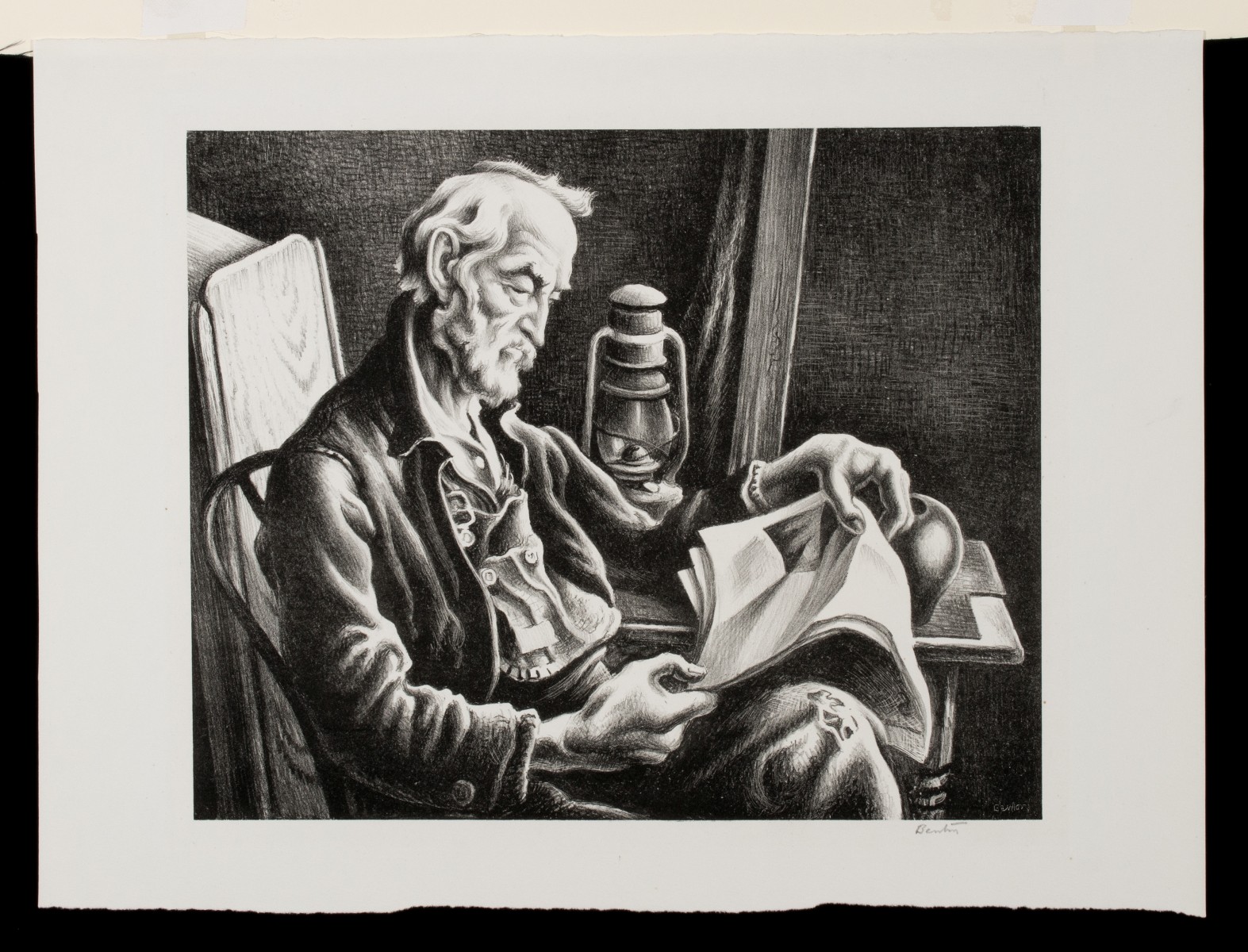 Benton's comments on this image in Fath read: My Kansas City art students acted as scouts to find good models for our classes. This old man was from one of the small towns near K.C. A painting was made directly from life. The litho was made from the painting. The last I heard of this painting it was in India in the collection of an American doctor who resides there.